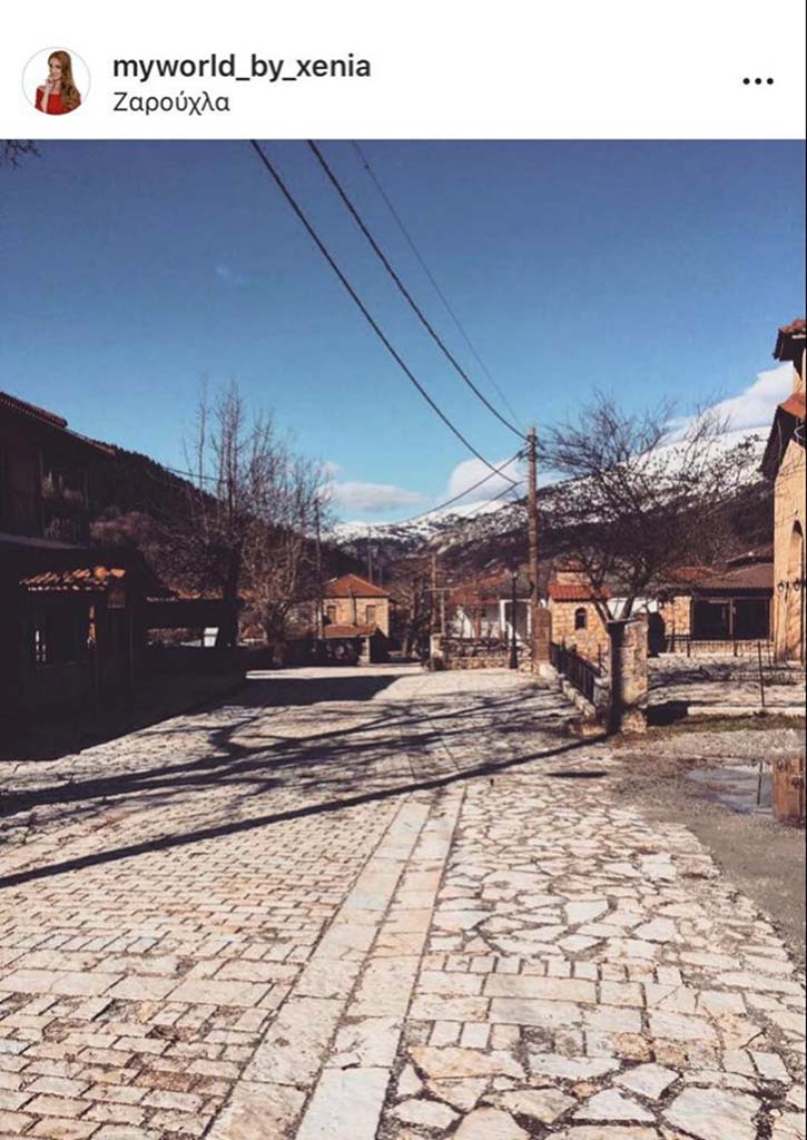 Συνεχίζοντας μια όμορφη, χιονισμένη διαδρομή, λίγο αργότερα έφτασα στην πέτρινη και ελατοσκέπαστη Ζαρούχλα. Η Ζαρούχλα είναι ένα πολύ όμορφο, γραφικό κεφαλοχώρι, κυριολεκτικά πνιγμένο στα έλατα και τις καστανιές, με τα σπίτια του σε ύψος 1.100 μέτρων ανάμεσα σ’ ένα άνοιγμα που δημιουργούν τα βουνά Χελμός και Σαραντάπηχο. Στη Ζαρούχλα διασώζονται αρκετοί πέτρινοι πολεμόπυργοι και λιθόκτιστα αρχοντικά. Κάποια από αυτά μάλιστα μετρούν πάνω από 300 χρόνια ύπαρξης. Η Ζαρούχλα έχει εξελιχθεί σε ένα από τα πιο δημοφιλή θέρετρα της ορεινής Πελοποννήσου. Πέτρινα σπίτια, χτισμένα αλλού ψηλότερα, αλλού χαμηλότερα, παραδοσιακοί ξενώνες, ταβέρνες, καφετέριες και μαγαζιά με ντόπια παραδοσιακά προϊόντα, συνθέτουν αυτό το μαγικό σκηνικό.