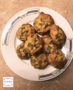 - Πλάθουμε μικρά κεφτεδάκια και ψήνουμε σε λαδόκολλα στους 180 C στον αέρα για περίπου 25 – 30′.